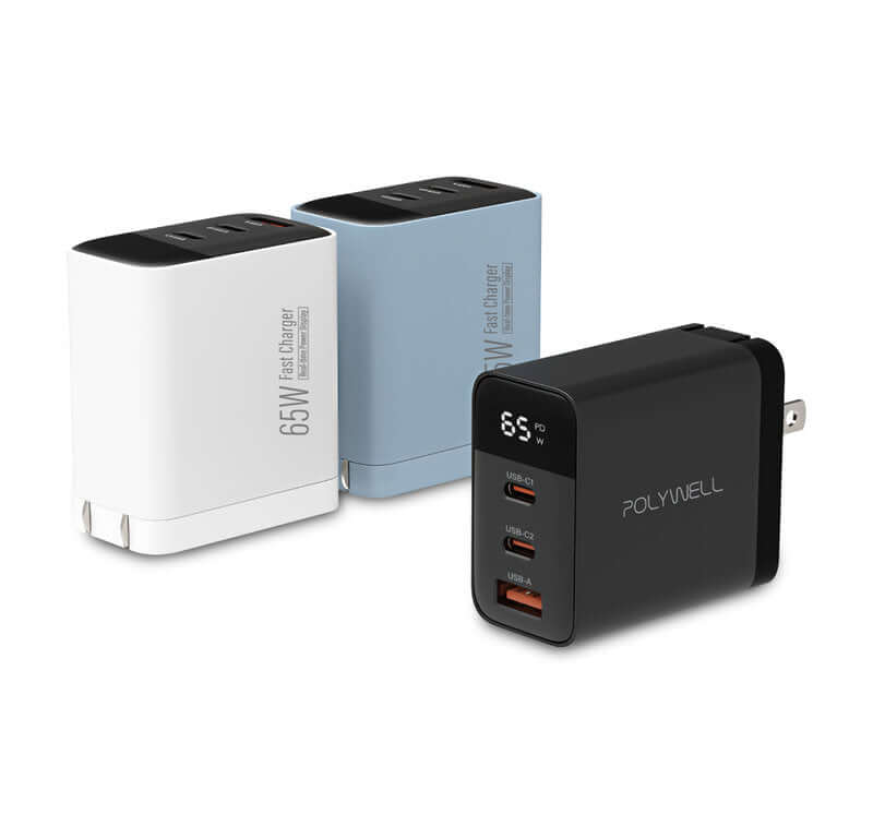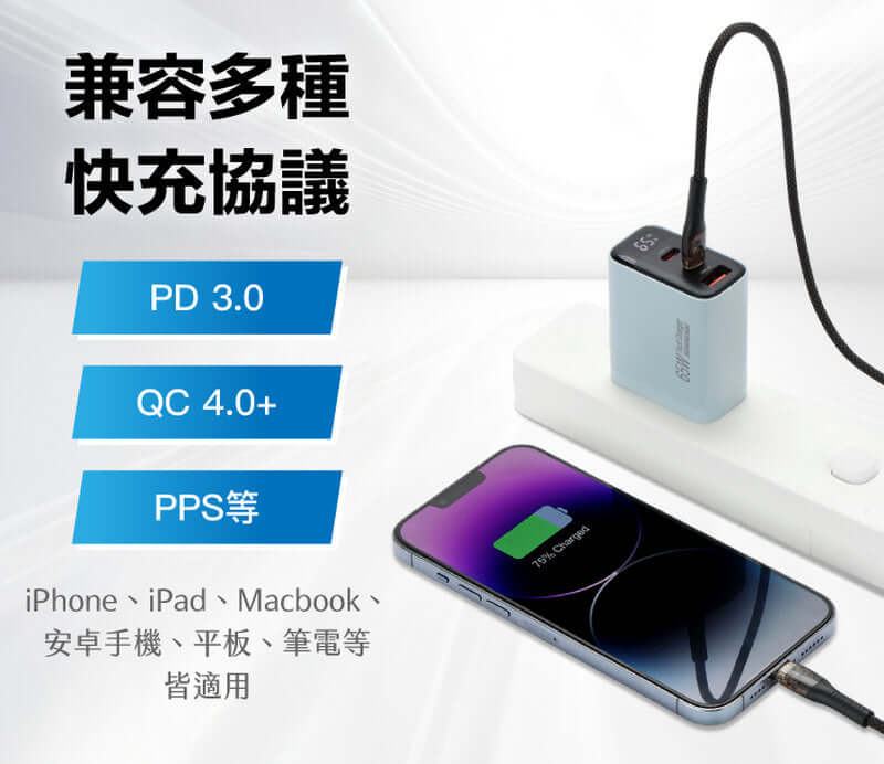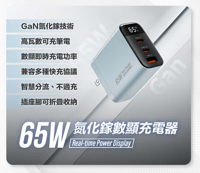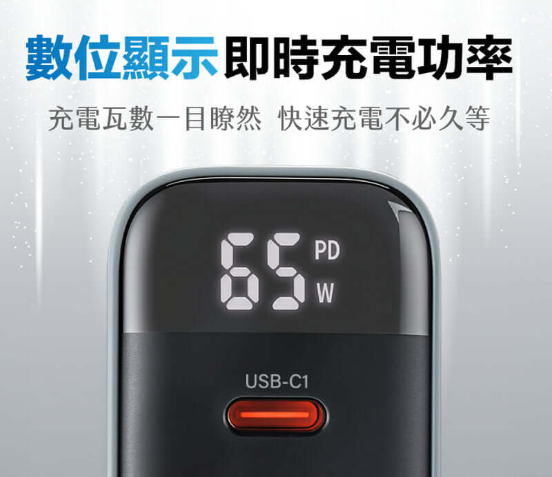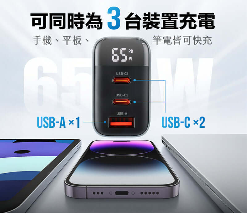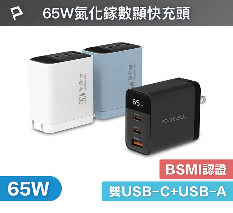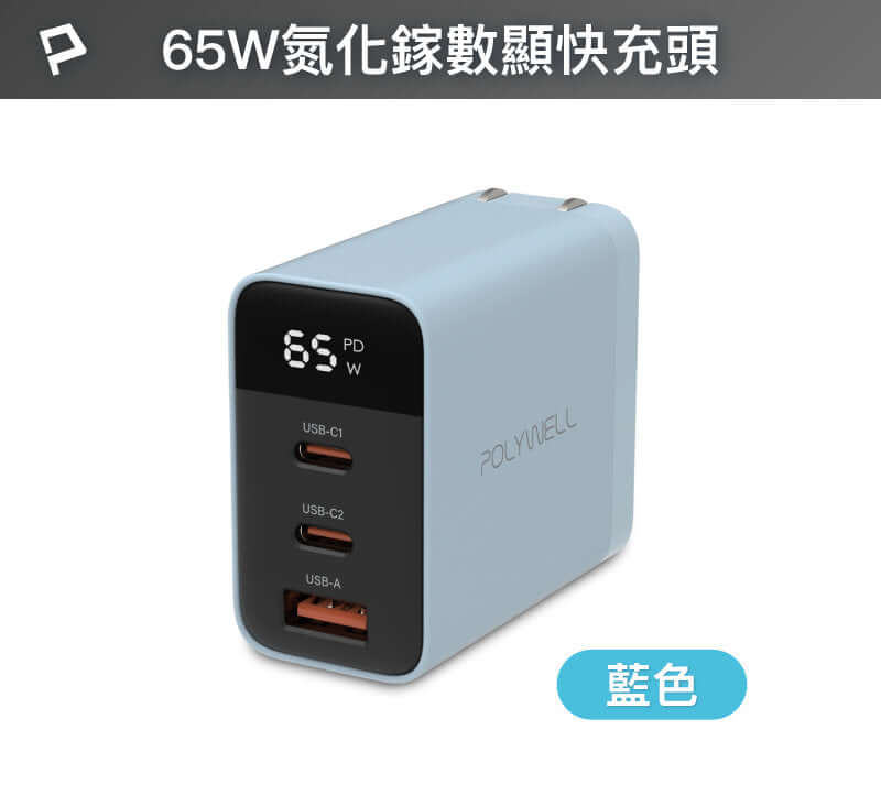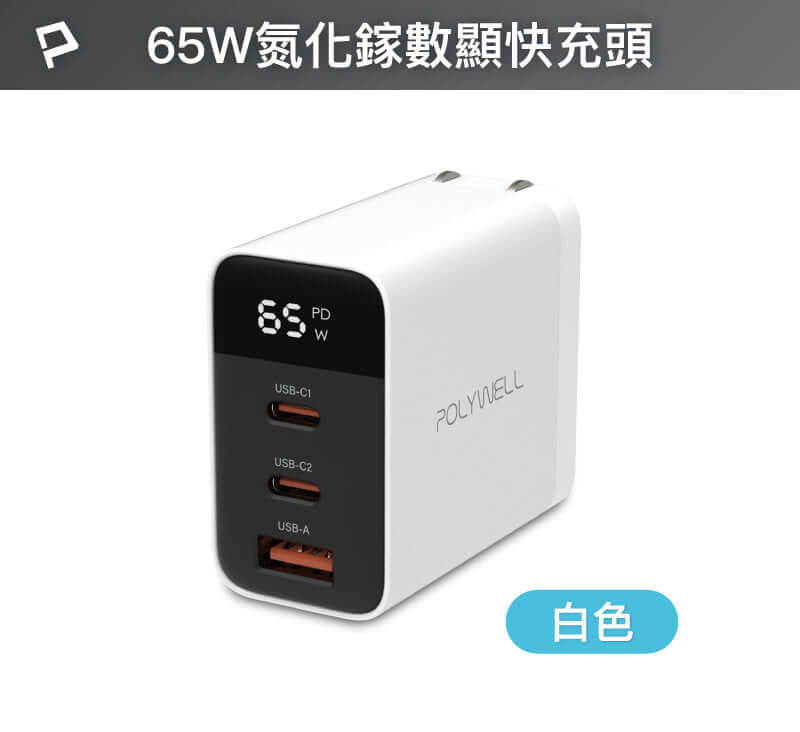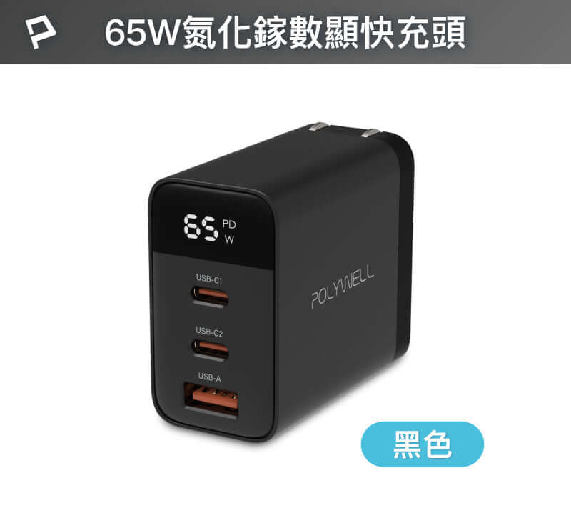 ◎ 產品:POLYWELL 65W數顯三孔PD快充頭