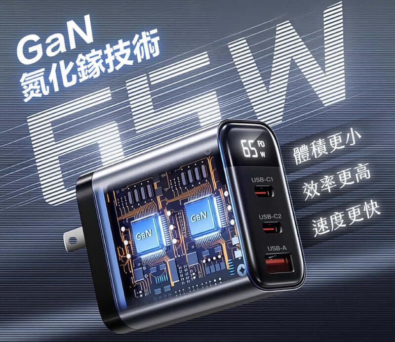 【GaN氮化鎵製程】採用最新GaN氮化鎵半導體技術,體積小、效率高、速度快,穩定輸出更安全