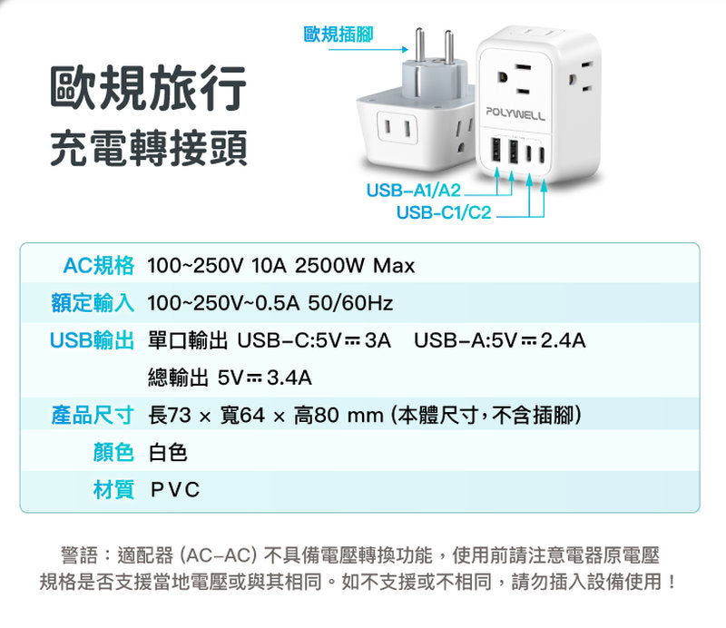 ◎ 產品名稱:歐規旅行充電轉接頭