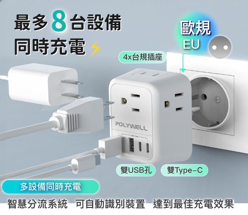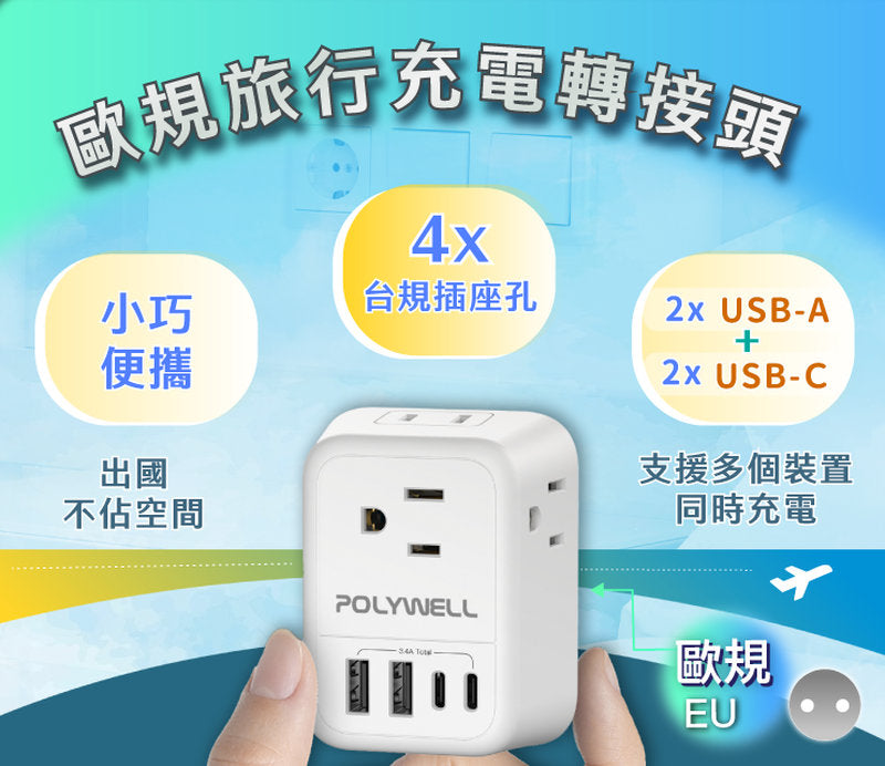 【歐規轉接頭】多孔USB+歐規轉接插座!出國旅遊不再擔心插頭不能用或帶錯轉接器