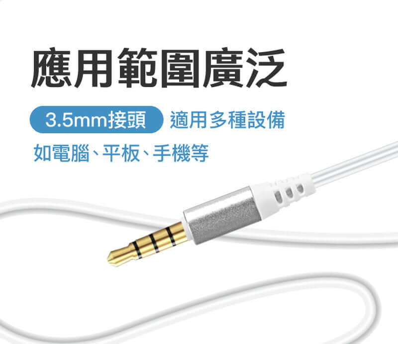 【3.5mm圓形插頭】設備最常見插頭規格,手機外也可於筆電上使用