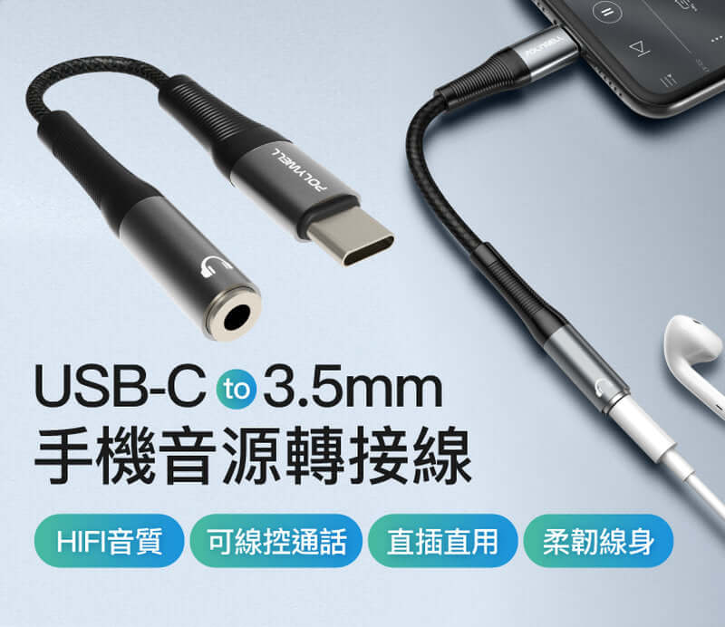 - 轉換Type-C埠到3.5mm AUX插座,含麥克風功能
