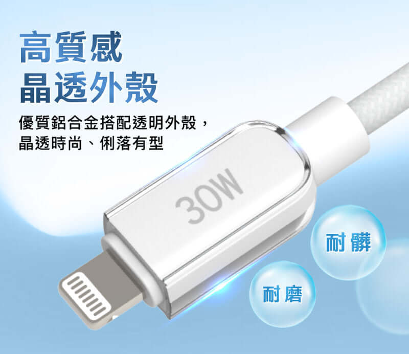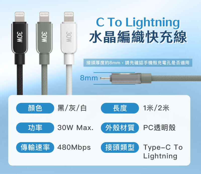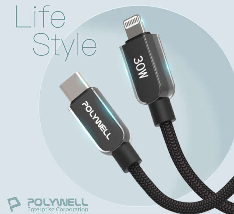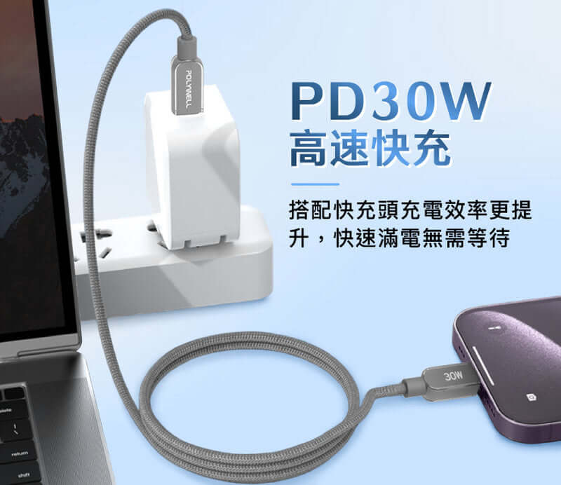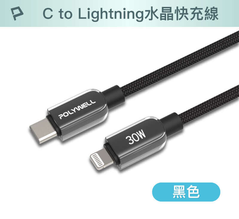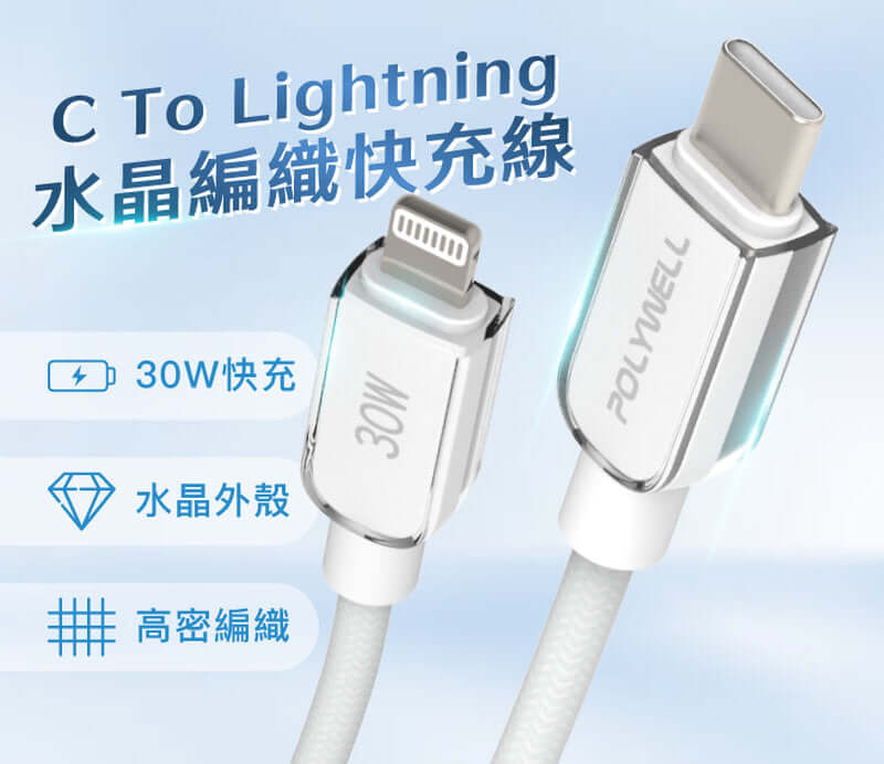 ◎ 產品名稱:POLYWELL Type-C To Lightning 水晶編織快充線