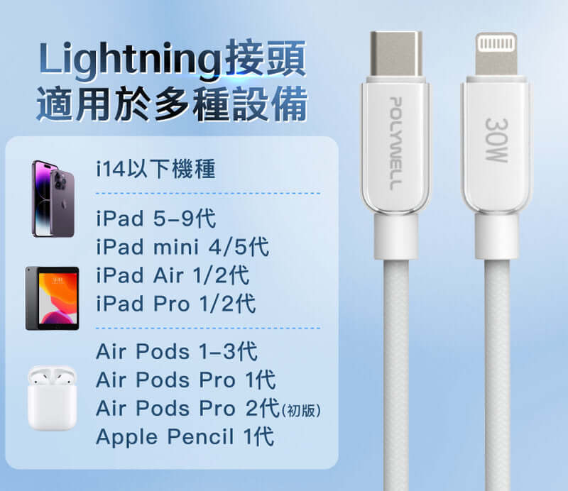 ◎ 適用機種:適用於iPhone14及以前機種、iPad、AirPods等Lightning埠產品