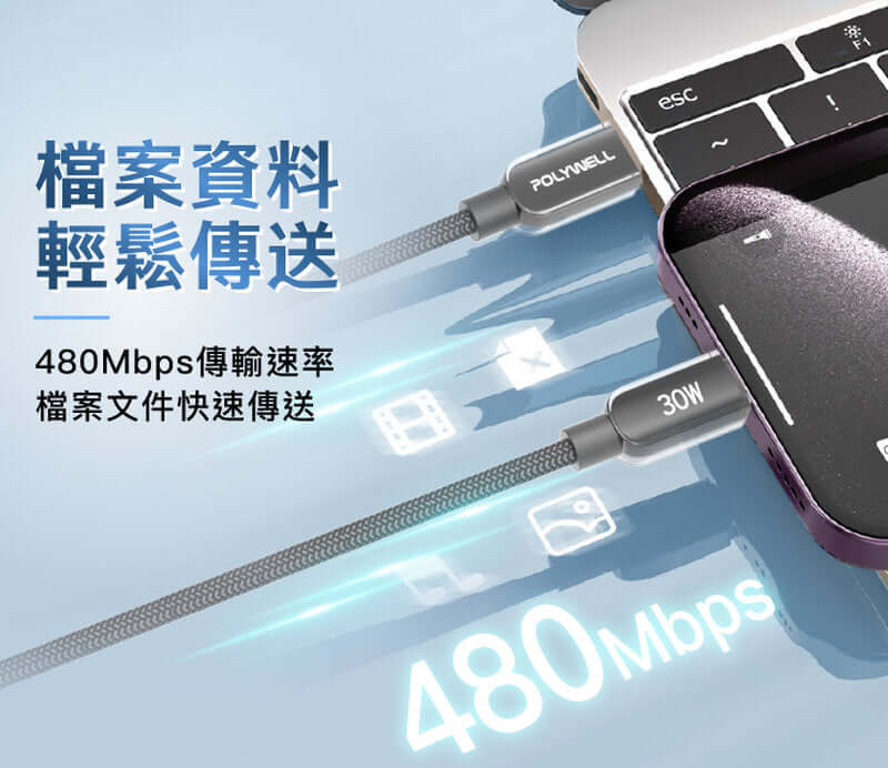 【資料高速傳輸】資料傳輸速率高達480Mbps,充電與傳輸同步進行,省時又高效