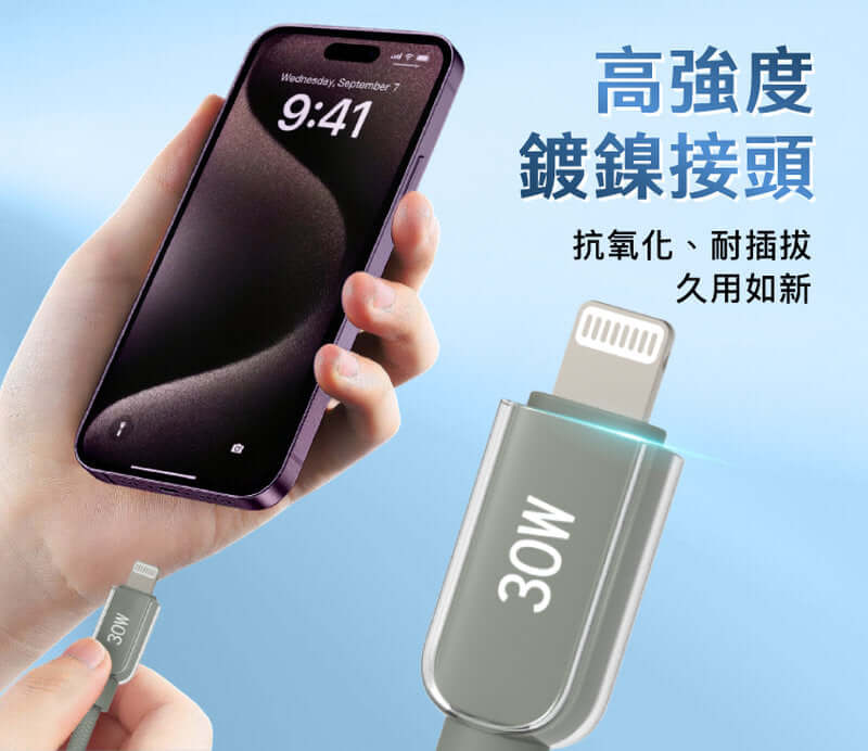 【30W PD快充】支援PD協議,最高輸出達30W,可為蘋果手機快速補電