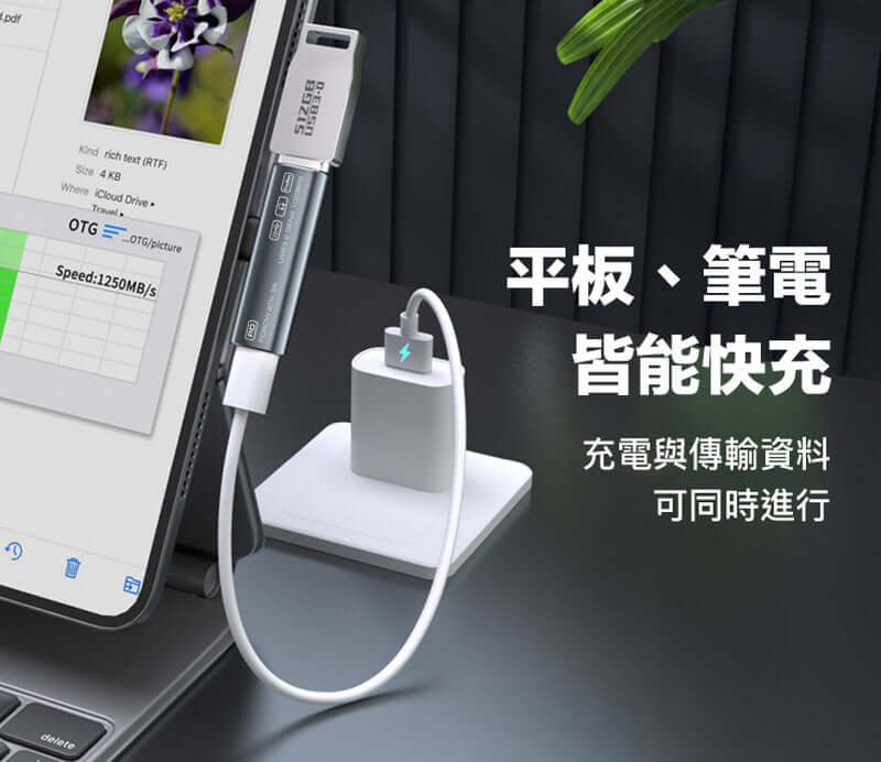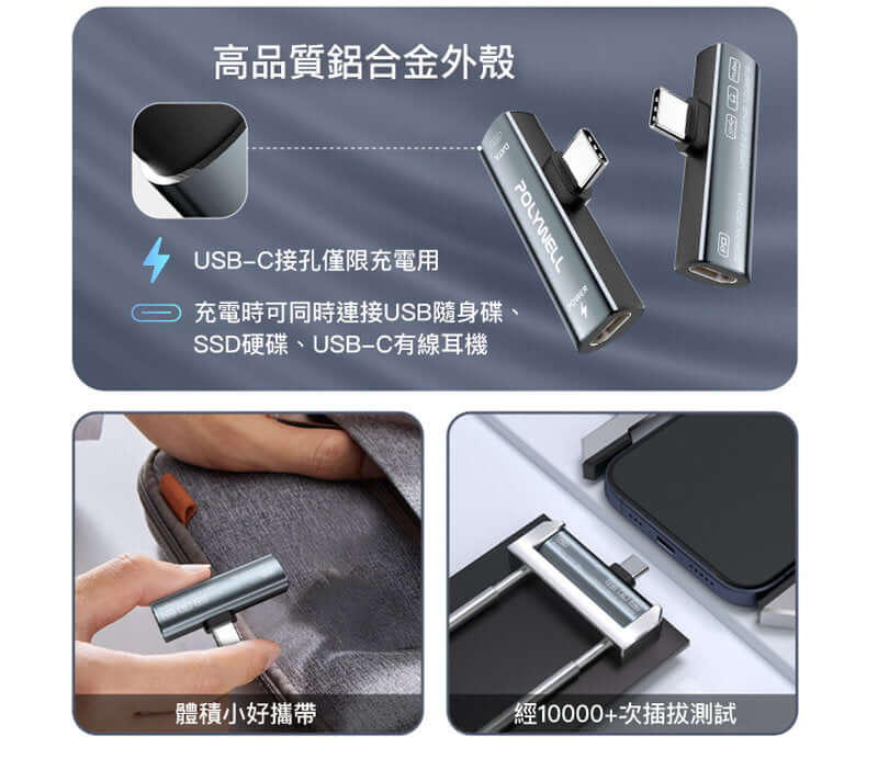 - 可同時插上Type-C充電線回充手機、平板、筆電,最高可達60W