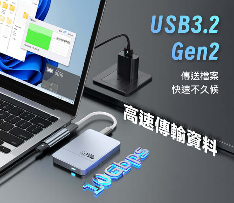 - USB3.2 Gen2 快速傳輸資料,傳輸速度可達10Gbps/秒