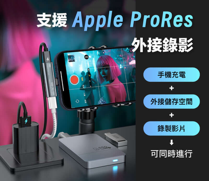 - 支援Apple ProRes外接儲存空間,外接錄製影片與充電可同時進行