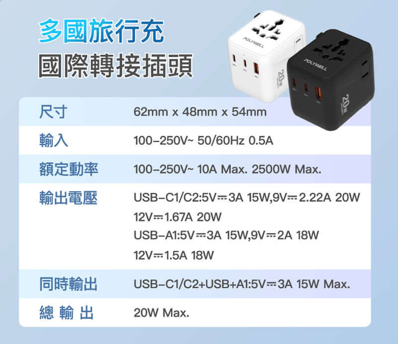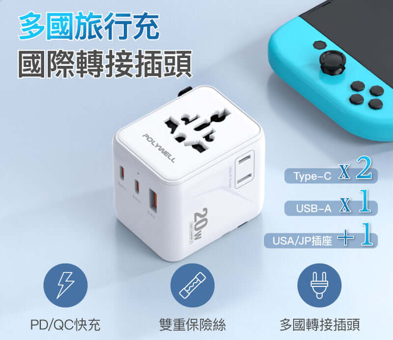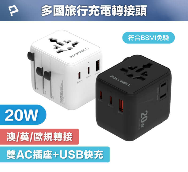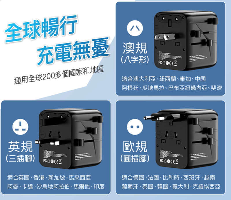 ◎ 產品:20W 多國旅行充電轉接頭 (無台灣/北美插頭)