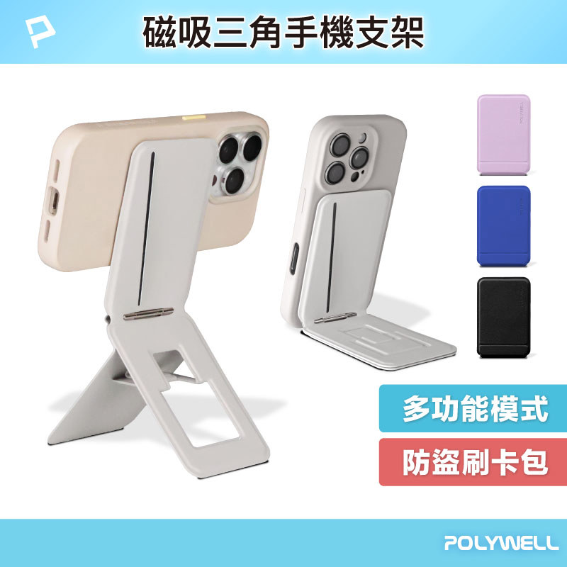 磁吸式手機三角支架 卡包功能 防盜卡夾 折疊式 皮革質感 適用蘋果安卓