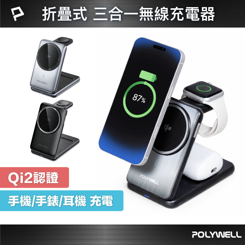 Qi2折疊充電支架 三合一多功能無線充 iPhone Watch Airpods 磁吸充電